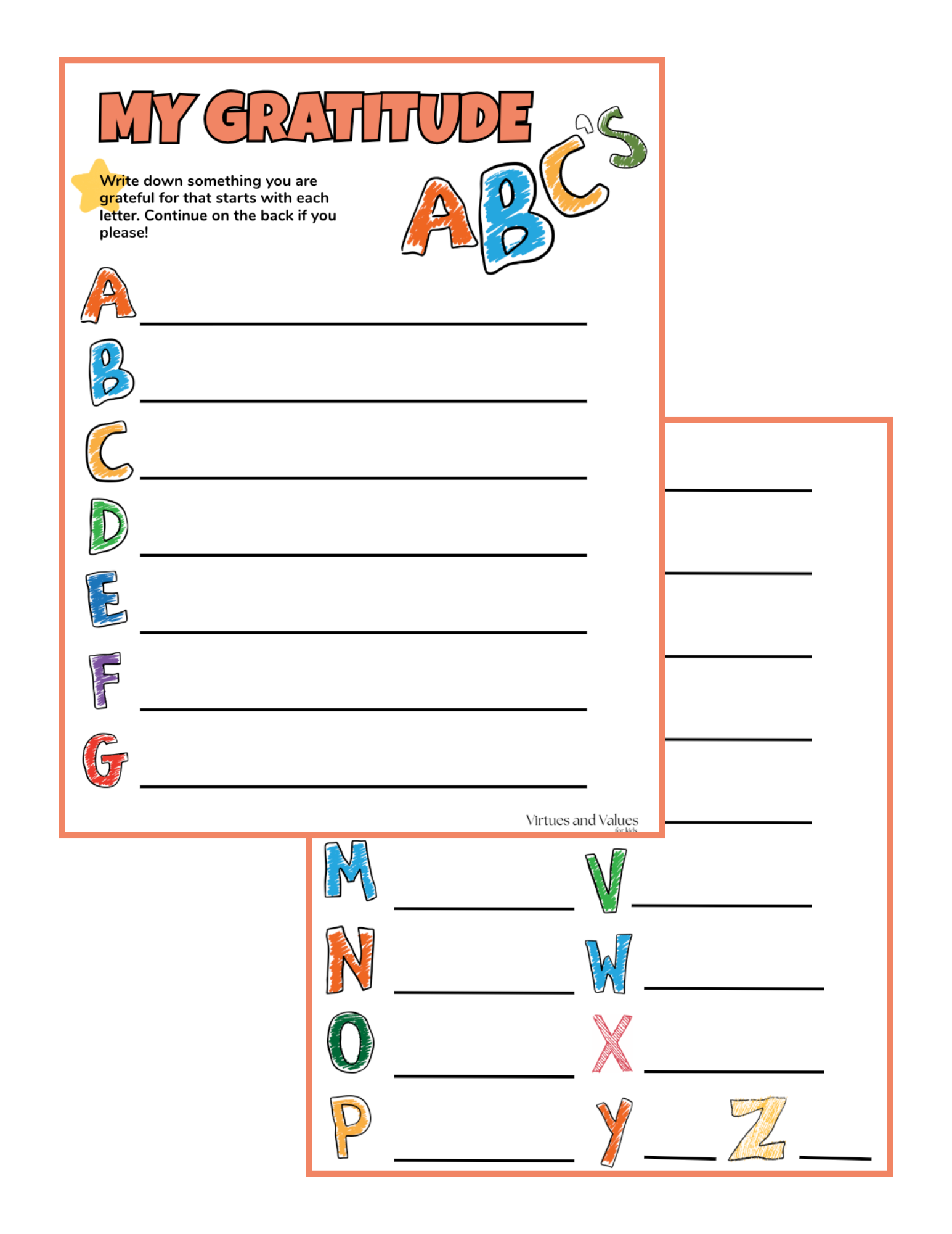 A-Z Gratitude Worksheet